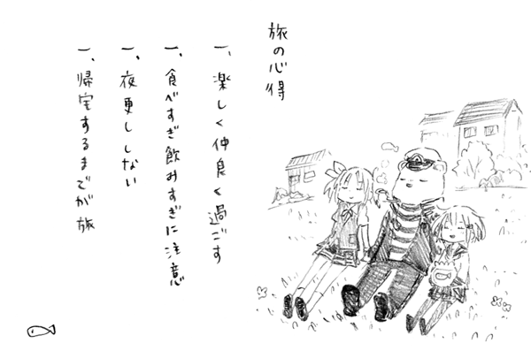 PAGE | 97 94 93 87 86 85 83 81 80 79 77 | ADMIN | WRITE 2015.07.29 Wed 01:44:45 京アニツアーズ①京都京アニ巡礼旅行記 さやか:美樹うらの(私)、まどか:鹿目じゃこ(じゃこさん) でお送りします。 「旅の心得」 旅のしおり(じゃこさん作)より 【出発】 現地集合のため私は夜行バスで京都に向かったのですが シートが普通のバスのやつだったので狭い尻痛い不便の3重苦で夜行バスのしんどさをしっかり思い出しました。今まで使う用がなかったんじゃない。わざと避けていたのだった! 隣の人は休憩に1回も降りることなく眠り続けていたのが不思議だ…無理だこんなの…おかしい… 【早朝】 当然眠れるわけもなく。やっと到着した京都の朝日はすがすがしいものでした。 さてここから行動開始です。まずは朝食か、はたまた風呂に行くべきか… ご飯も風呂もかなぐり捨てて伏見稲荷に来た。 人がいないのは早朝の特権です。写真も好き放題撮れるってもんです。なので! 人がいないと猫が鳥居くぐってるぞ!!! ちなみに伏見稲荷に向かう道中、 ナビがとんでもない道を案内したので散々な目にあいました。高さ1.4mしかない細い川沿いの道を通れだなんて。これなら地元民のおじさんが教えてくれた通りに行けばよかったってもんです。そう、実は遭遇していた地元民の方の親切を無碍にしましたよ!!!おかげでめちゃくちゃ歩かされましたね!!!!! さて、風呂を済ませて朝食をいただいてる時に本日の計画を立てていました。見所満載な京都ですが、今艦これも熱いのでせっかくだから舞鶴も行ってみたいなーなんて。 陽炎が生まれた場所も舞鶴らしいし…でも…でも、遠いからまたの機会に… (てかあいつ京都だったのかよ!!!) 余談ですが陽炎の手袋を忘れてしまいます。素手…いいよね!!!! 【嵐山】 竹林の道と渡月橋、駅にある京友禅の光林を見てみようと思ってここに決めました。今思うとなんで金閣寺や桂離宮行かなかったんだと疑問が…ギリッギリまで舞鶴を迷っていたのか電車に乗ってまで往生際の悪い…! で、天龍院も名所のようなので、竹林をみながら行くことにしました。 ほほう、ここがよく旅行誌に載る竹林か! 調子に乗ってズンズン歩いていたら、まぁ迷いましたね! 来た道を引き返す分歩く量が加算されて寝てない体にこたえます。 ただでさえ悪い雲行きが更に悪くなりましたが、辿り着きました天龍院。 本堂から庭を眺めた方が私は好きです。なので達磨が出迎えてくれる入り口から是非。 庭園にも入れるから散歩にいいかもしれません。庭園内に精進料理屋もあります。 雲龍図は別のお堂で拝観できます。 当然靴を脱いで入るのですが、天井の龍を眺めてしばらく佇んでいたら思いました。 「(みんなスリッパ履いとる!!!!!)」 スリッパの存在に気づかずにいたなんて…うっかりしていたわ…! 【昼食】 おばんざいは夜食べる可能性が高い!!!と勝手に見越して、ゆばー 二階席から通りの観光客眺めながら美味しくいただきました。 浴衣着てる人もいたのでお祭でもあるのかな? 【京友禅の光林】 嗚呼どんより曇り空~!ライトアップしたらめちゃくちゃキレイなんでしょうね。 【渡月橋】 嵐山といえばこの橋のイメージ強いですね。やっと実物をみることができました。 ところで、一雨来そうなくらい重たい空ですね!!! …ほんとに降ってきちゃいました。いやあ降りが強い。 そして疲労から体が動かなくなるところまできてしまったので、どこか建物に避難したい… さすがっす!ナイスタイミングっす!!! 元銭湯をオサレに改装したカフェを発見でございます。 疲労困ぱいの体にホットケーキが染み渡ります。 外の看板にあったカキ氷も美味しそうでしたが、どうも体調が優れず不安を覚えたのでやめました。 いつしか意識を失うという事態に。迷惑かけてごめんなさい! 【合流】 完全復活を果たしていよいよ約束の時間です! ナビでスマホをだいぶ酷使してしまったので充電もいよいよ尽きそうです!! 改札で出迎えようと待っていたのですが、じゃこさんがいっこうに現れず。 場所を思いっきり間違っていましたね!!!!だめだこりゃー! とりあえず無事に合流できたので向かうは伊右衛門サロンです。 雨がやむ気配がまったくなくて、大荷物抱えての移動はなかなかしんどい。 おー!ここめっちゃ楽しみにしてたのよ! 混んでいたのでレジの近くで待ってる間、モーニングの予約がくるわくるわ。 でも思ったより待ち時間も長くなく、すぐ席につけたのがラッキーでした! コースはお茶漬け仕様にしてもらいました。すごく美味しい。 そーいえばお昼におばんざいの予感をしていたはずでしたが、まったくの気のせいでした!お茶漬けめちゃくちゃ美味しい。 【おはかびゅー】 晩御飯も済んだところでホテル…ではなく旅館へGO! 旅館の窓からはどんな景色が広がっているのかな?なんか地味に楽しみなんですよね。 あ、なんかじゃこさんの反応がおかしい! 制止を振り切って開けた窓から広がる景色は、なんとお墓でした!!! すげえ…海