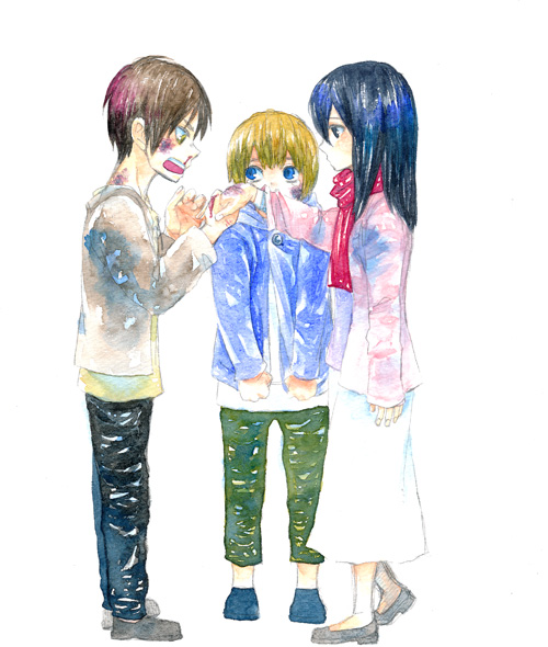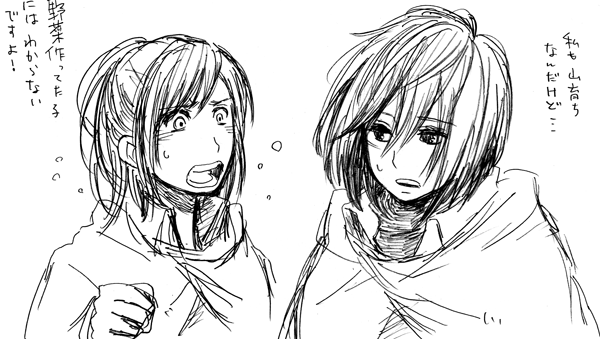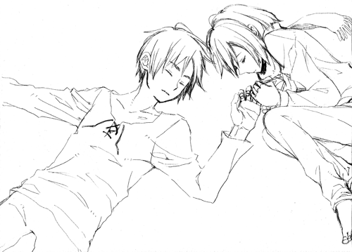 2013.06.24 Mon 01:32:10 すきなんだわ寝てるときにさり気なく指を握ってしまう(しかも薬指と小指だけ)なんて仕草というか、こーゆう構図がすきなんだわ。 前にもまどまぎで似たようなの描いたもの。 そして自分が思ってるより寝姿がすきなのかもしれない…。なんでだ……。 ミカサが丸まって眠るのは野生動物的な感じだからと言われて、それいいわー!と思った。そっかー動物かー! (ただ かわいいな~ くらいにしか考えてなかったので…。あ、あさはか…!) エレンはのびのび寝てそう。ミカサとは対照的に。 PR 2013.06.07 Fri 03:23:45 おやすみらくがきもいいところ。構図考えてたんです時間がなかった… ミカサはまるまって寝てるといいな …とか言いながら、この人の寝る姿をあんまり想像できなかったり。 いや、機械じゃないんだから眠るだろうけど! 浅くて短いのかなー それとも急に電池切れたみたいにパタっと寝てしまうのかなー ぐっすりと寝てしまうからなかなか起きないとかー 「…んぁ?」 2013.06.06 Thu 04:33:36 生傷が絶えません「ミカサ怪我してるじゃねーか!」 「(エレンのほうがよっぽど怪我してるじゃないか…!)」 「エレン、鼻血がでてる」 (服の色がわからんのだよ…) 紹介してもらった考察をさら~っとみました。 進撃の冒頭、ミカサが「いってらっしゃいエレン」って言っていたところやエレンが泣いているところをみると 私もこの2人はあまり良い予感がしないというのはなんとなーく する。 ミカサは死ぬんじゃないかと…おもうの…… いや、エレンかもしれない。もしくはどっちも死なないけどずっと一緒にはいられないんだろうなって雰囲気が…。 ハッピーエンド好きにとっては気のせいであってほしいこと。 しかもエレミカ好きなんで余計つらいからほんと気のせいであってほしい。 でもね、もしミカサが死んだとき、今まで一緒にいることが当たり前だったエレンにとって いなくなってはじめて大切だったって、気づいてももうどこにもいなくて心が潰れてしまう瞬間はとても見たいです。 これはあれだ、実はどっちかが死んでしまったら生きていけないのは本当はエレンのほうだったらってゆうやつだべ。 何言ってんだかわからなくなってきたぞ… |
