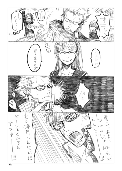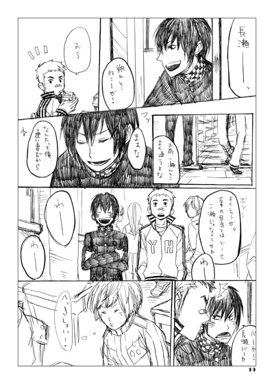 PAGE | 86 85 83 81 80 79 77 76 75 74 72 | ADMIN | WRITE 2014.10.05 Sun 11:31:36 スパーク新刊案内10/12 スパーク9 東5 ふ-17ab 「よこはまおおさかさわやか」※じゃこさん、ふるやさんと主雪合同サークルです。スペースNo.は「ふるや17歳」って覚えてください。 新刊「sparkling」A5 P36 オフセット 500円 となります。 内容は今年初めに消失したサイトのまとめ。主雪と二年生の日常を綴った短編群。鉛筆書きそのままで当時の雰囲気を残しつつ加筆修正と、ささやかですが書き下ろしもあります。2014年版と言った感じでしょうか。ちなみに表紙はオンデマです。キラキラするはず! 続きからサンプルです。 余談ですが、めずらしくネーム切って新刊に取り組んでいましたが、どうにもこうにも話が暗くて気分があまりよろしくない内容になってしまい2本没になってしまいました。私は楽しい話や辛くても最後には幸せになれるような話が描きたかったのだ。 下北の相方であるこのはが助言してくれたおかげで今までやったことがなかったサイトまとめを出すことになり、新鮮な気持ちで見返すことができました。この場でありがとうという。 PR CommentsComment Form |